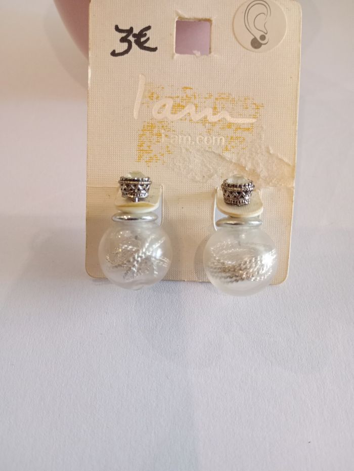 Boucles d'oreille argentées avec fil argenté dans une boule. Marque : I Am. Neuves