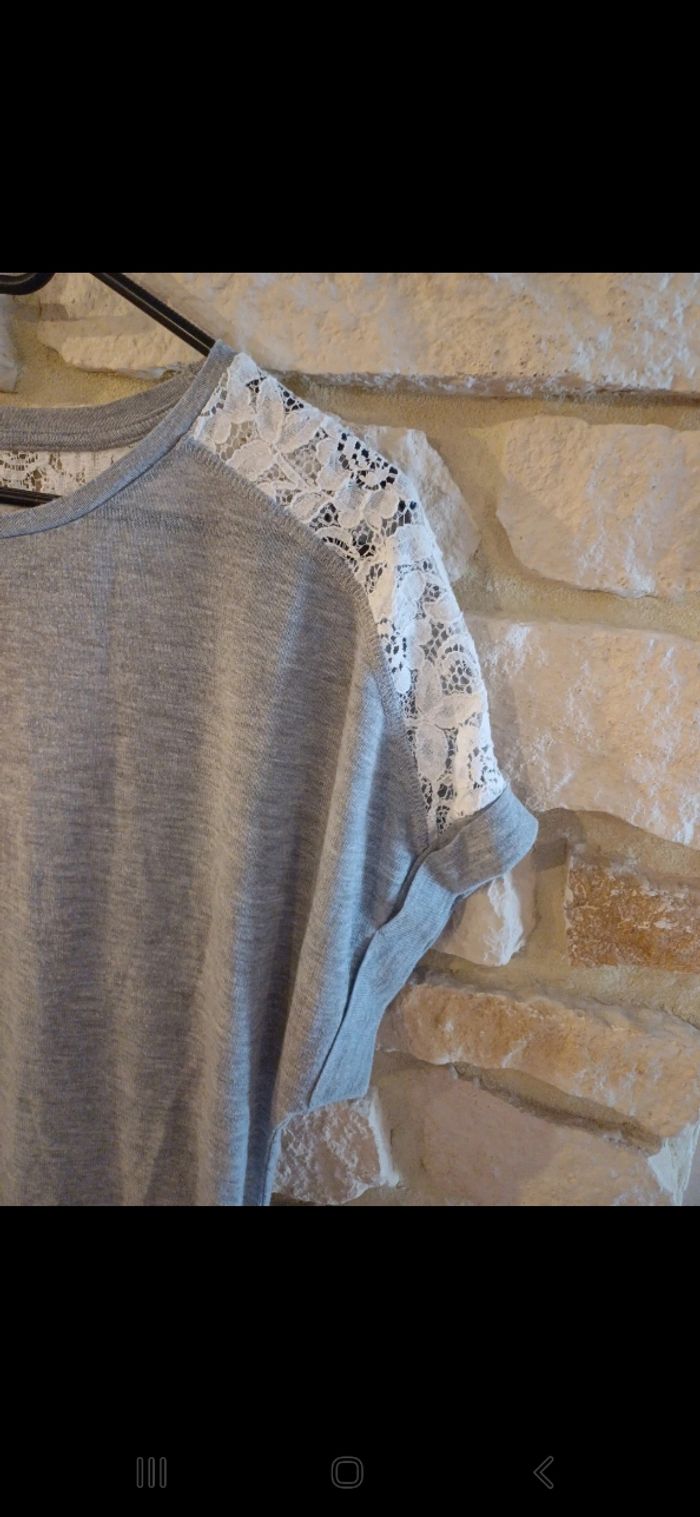 T.shirt manches courtes avec dentelle sur les épaules et à l arrière.
