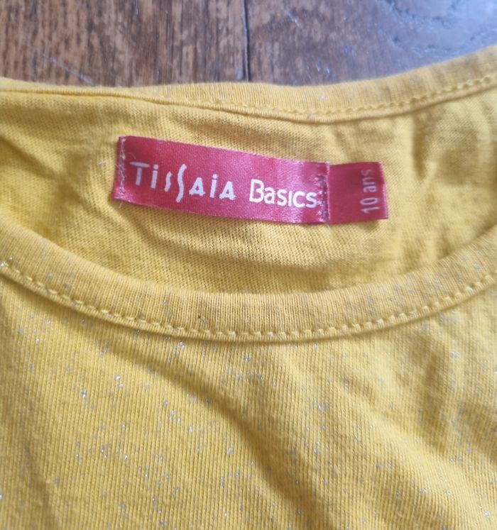 T-shirt manche courte jaune et argenté tissaia taille 10ans