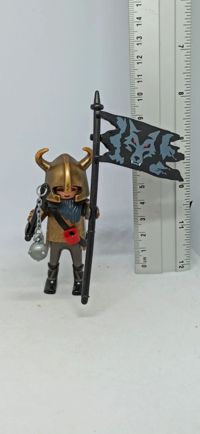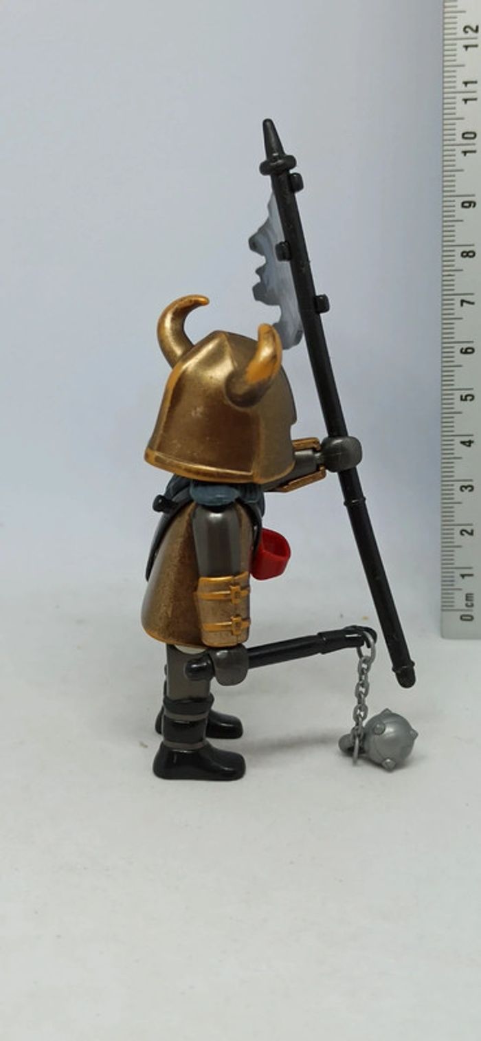 Homme chevalier armure bronze avec drapeau loup playmobil - photo numéro 1