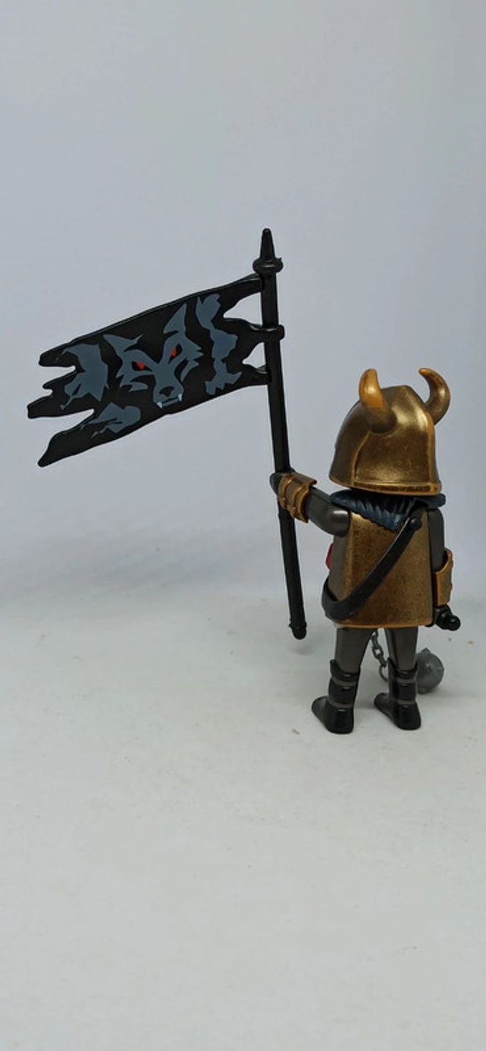 Homme chevalier armure bronze avec drapeau loup playmobil - photo numéro 2