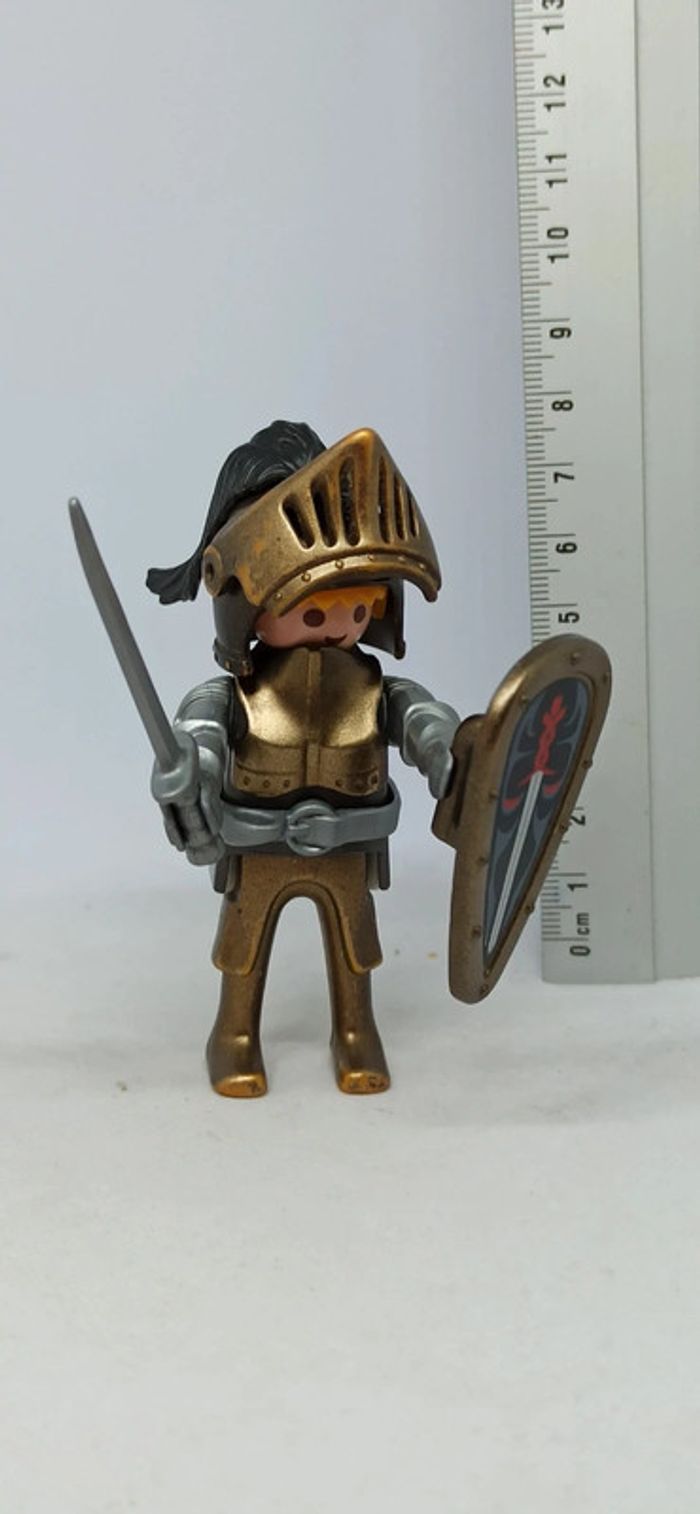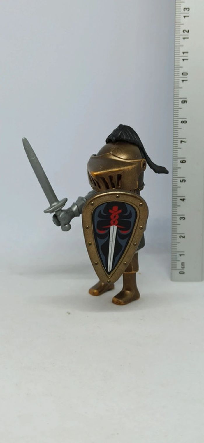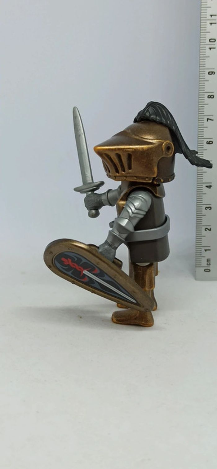 Homme chevalier armure couleur bronze avec bouclier et épée playmobil
