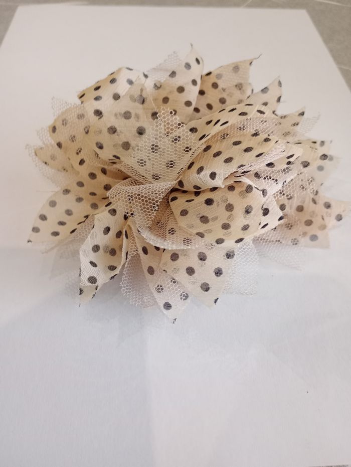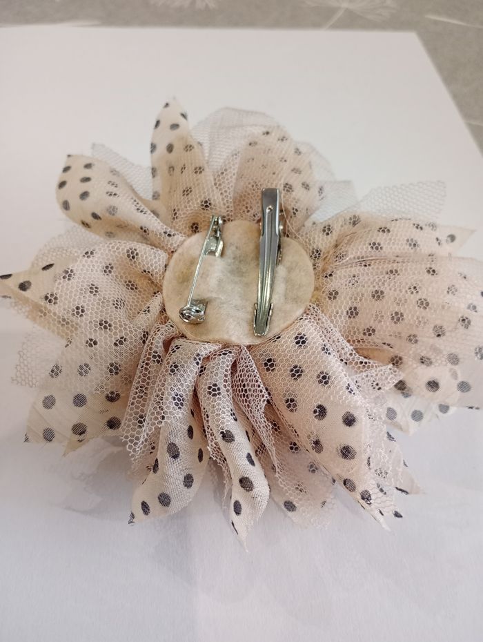 Fleur rose poudré. Peut être accrochée dans les cheveux avec la pince ou comme broche. Diamètre : 13 cm. Très bon état