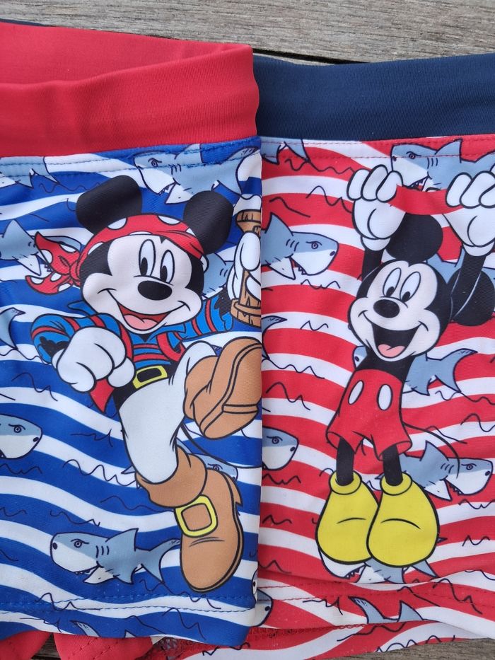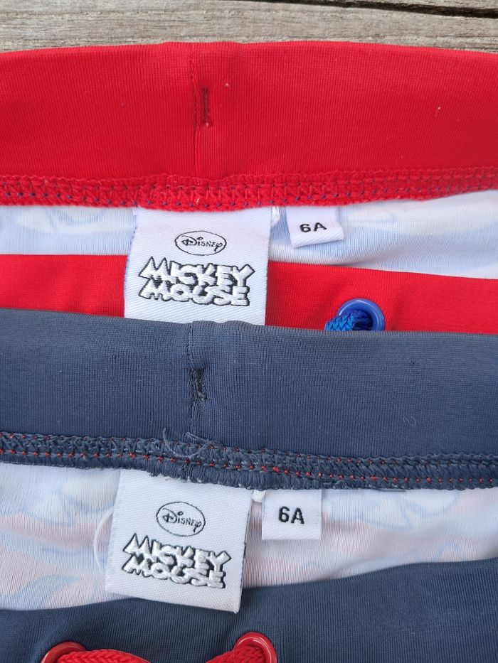 Lot de 2 maillots de bain Disney Mickey. Portés, bon état, un peu râpés derrière, visibles sur les photos. #sysasysa6ans #sysasysajumeaux
