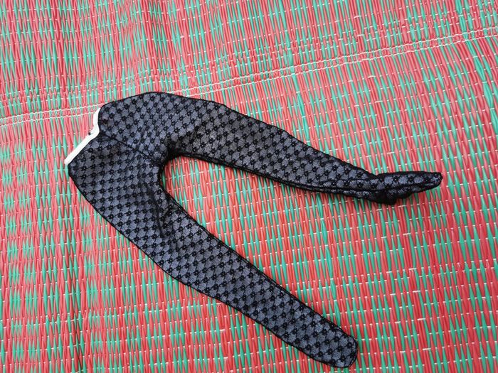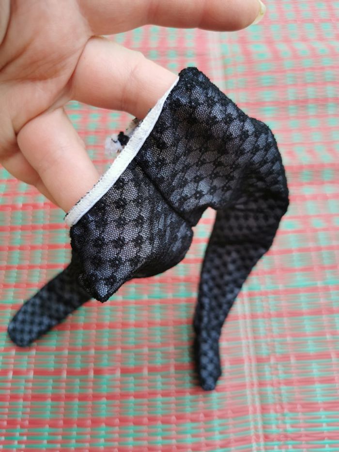 Collant noir dentelle pour poupée, taille elastique, en très bon état général. Mesures : Longueur jambe depuis la taille : 26 cm (avec le pied) Longueur jambe depuis l'entrejambe : 20 cm (avec le pied) Tour de taille : 22 cm (étiré) Poids : 15g Pensez à faire des lots afin de bénéficier des remises que j'ai régulièrement sur ma page. #accessoirepoupee #poupeecollant #collantdentelle #collantpoupee