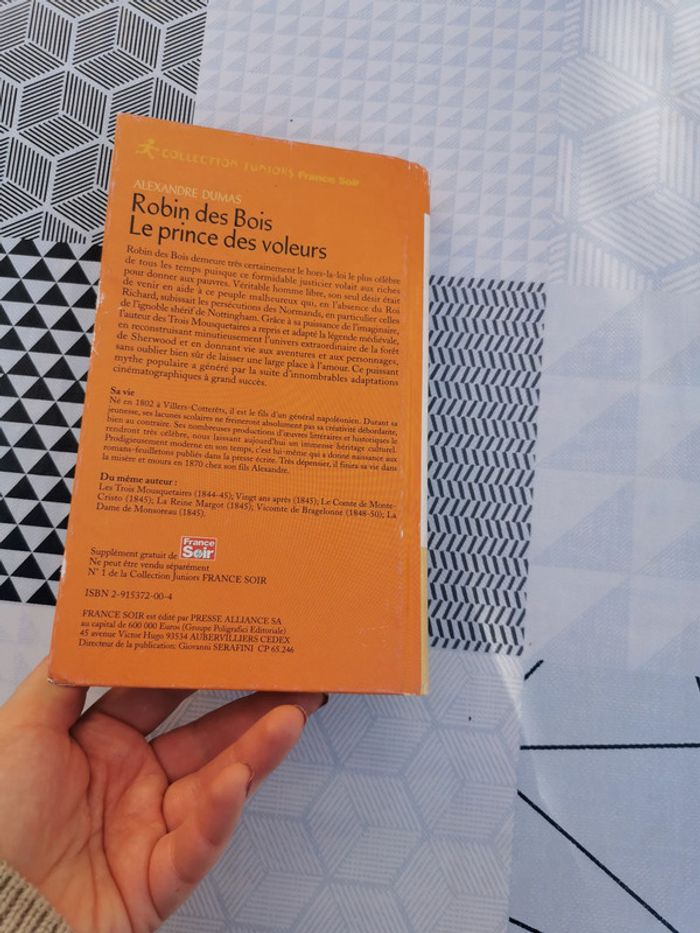 Robin des bois, le prince des voleurs, Alexandre Dumas, collection Juniors France Soir, 2003, 249 p., 300g. En bon état, couverture rigide légérement marquée, l'intérieur est en bon état. #robindesbois #francesoir #alexandredumas