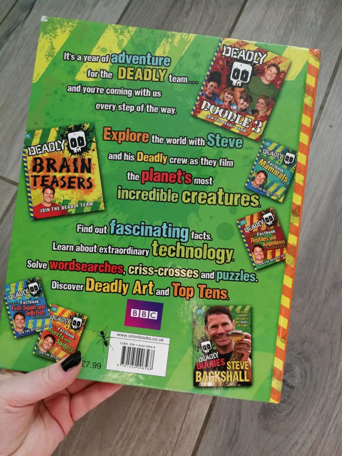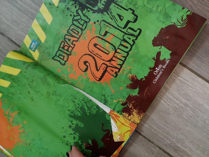 Deady 2014 annual. Join the deadly team, BBC Earth, éditions orion children's Books, 2012, 73 p., poids 565 g. Le livre est en anglais, dans la couverture rigide, état satisfaisant, deux pages déchirées, le livre a pris l'humidité, mais sec et ne sent pas. #livreanglais #livreenfant #livredeadly