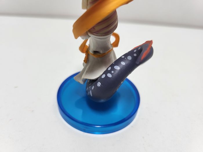 La figurine est d'occasion sans boite. Quelques marques et poussières sur la figurine et sur le socle. Les 2 parties plastique blanche ne rentre pas correctement dans la figurine. (voir photos)