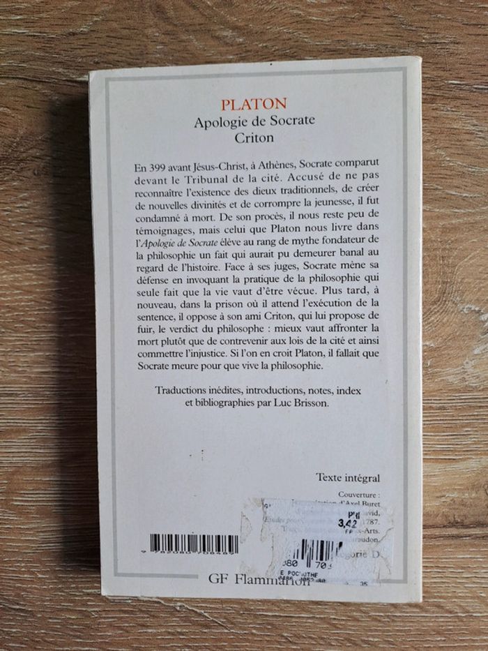 Livre en très bon état 💜 Apologie de Socrate et Criton de Platon Qq pages de corvées au début du livre Pour voir mes autres annonces tapez #jessiemathildelivres