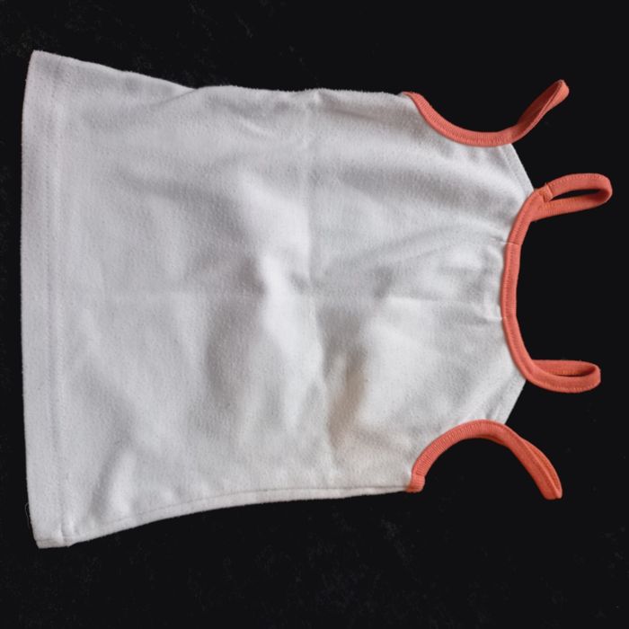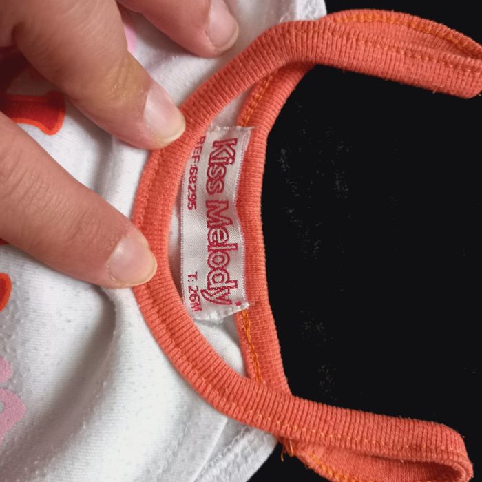 Ensemble pour enfant 26 mois ,en très bon, couleur blanc et orange, T-shirt sans manches et short, marque : kiss melody, 65% polyester et 35% coton.