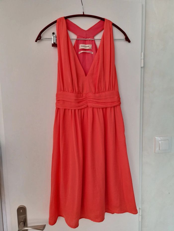 Robe rose Naf Naf 34 Portée une fois #julilo7femme Longueur totale environ 90 cm Largeur sous aisselles environ 42 cm Fermeture éclair sous aisselle gauche Doublée