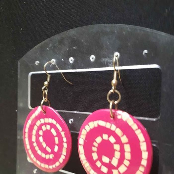 Boucles d'oreilles ronde rose avec spirale - photo numéro 4