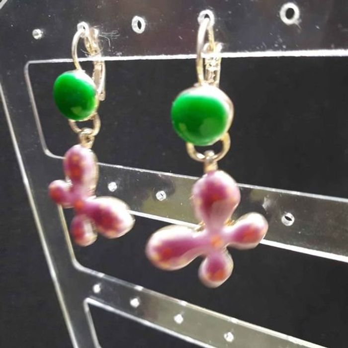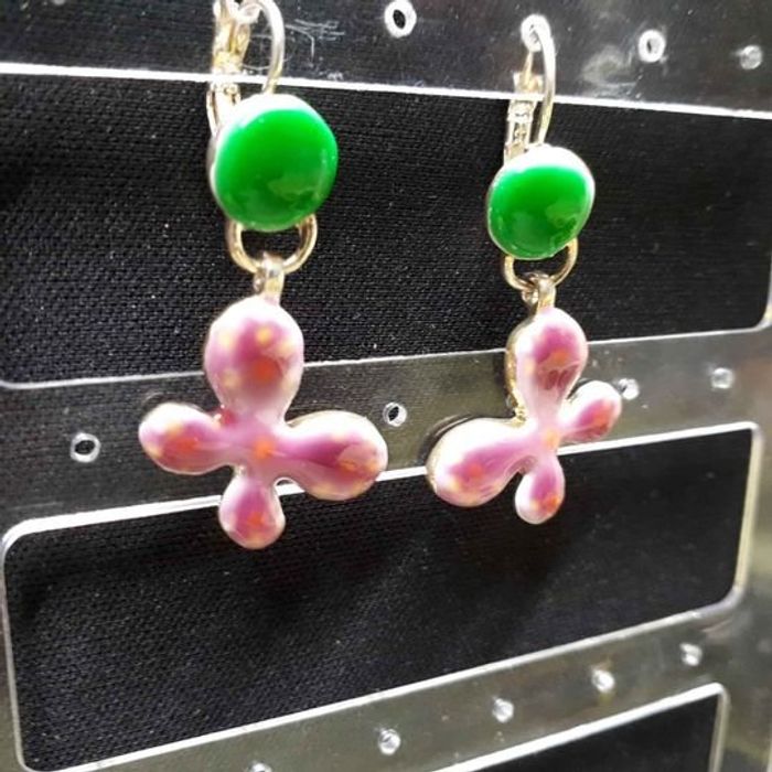Boucles d'oreilles fleurs rose et vert - photo numéro 1