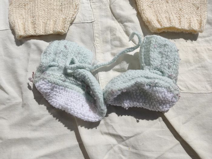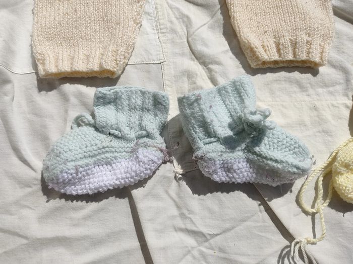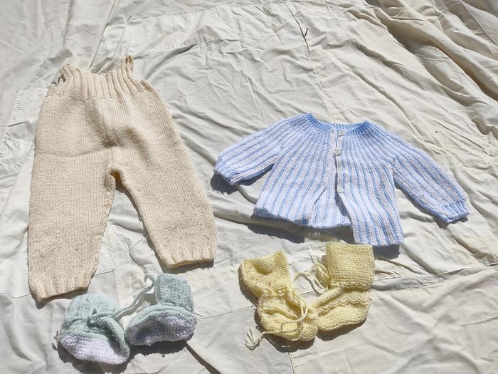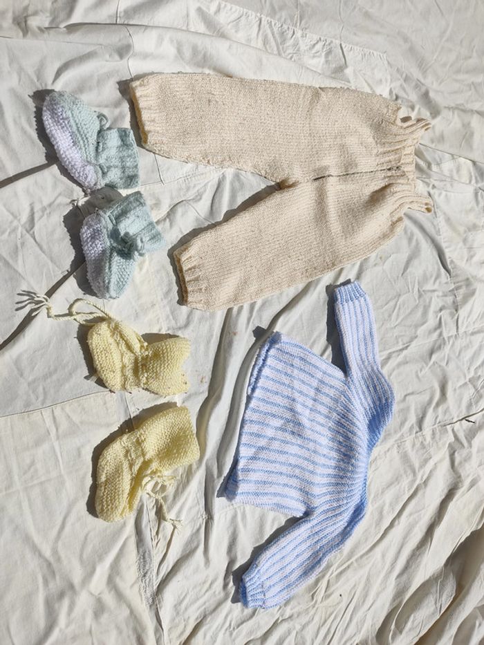 Vends habits de 3 mois tricotés à la main. Mixte. convient au fille et au garçon