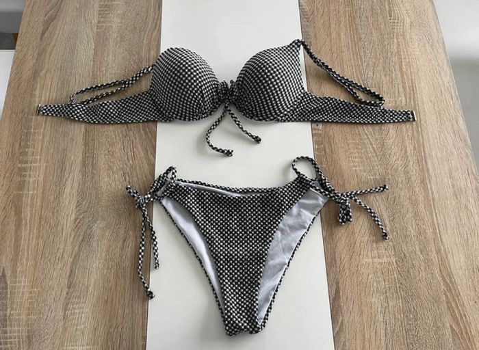 Swim bikini à noeud papillon à armature soutien gorge push up en Vichy et bas hipster Jamais porté