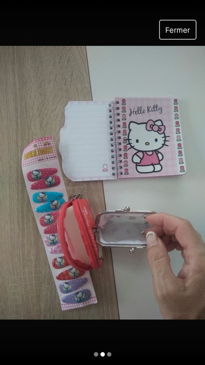 lot Hello Kitty comprenant : un carnet, 2 porté monnaie et des barrettes