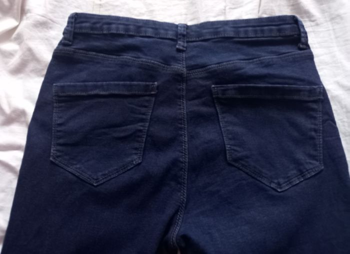 Jegging CLOCKHOUSE taille 38, bouton, fermeture éclair, poches devant et derrière (largeur ceinture à plat : 35 cm - largeur cuisses : 20 cm - longueur : 97 cm)