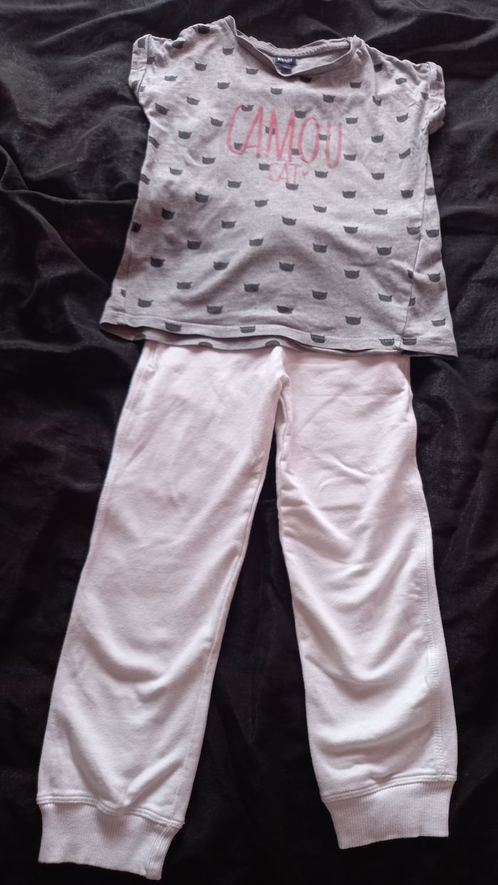 Ensemble 5 ans composé d'un tee shirt KIABI et d'un bas de jogging léger ORCHESTRA, lien de resserrage, poches, motif pailleté