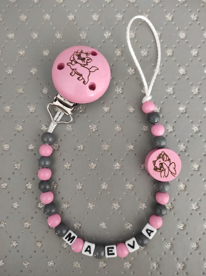 Attache tétine en bois prénom au choix couleurs au choix Marie - Aristochats envoie rapide !