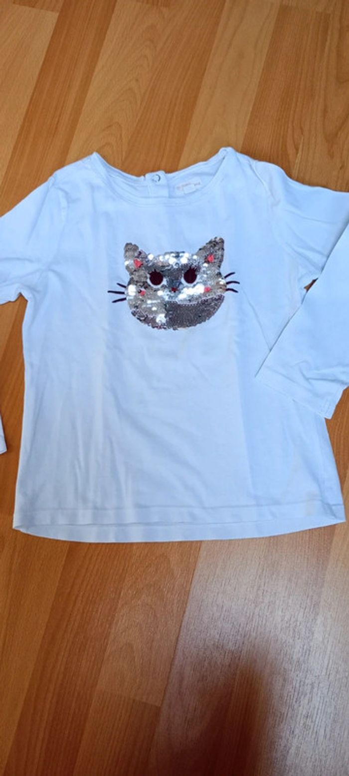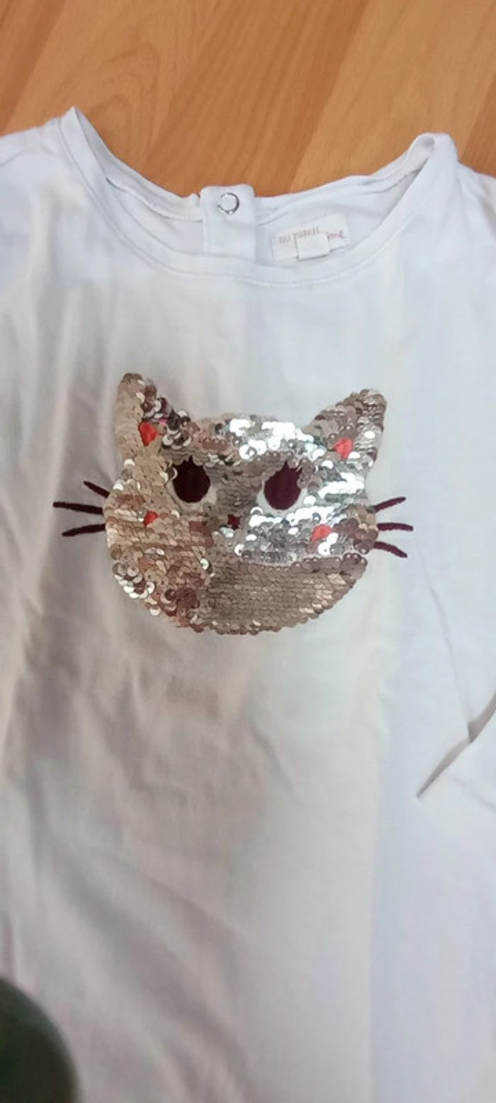 Blanc avec Chat à sequins Longues manches, fermeture au du dos 6 ans 116 cm #dupareilaumeme
