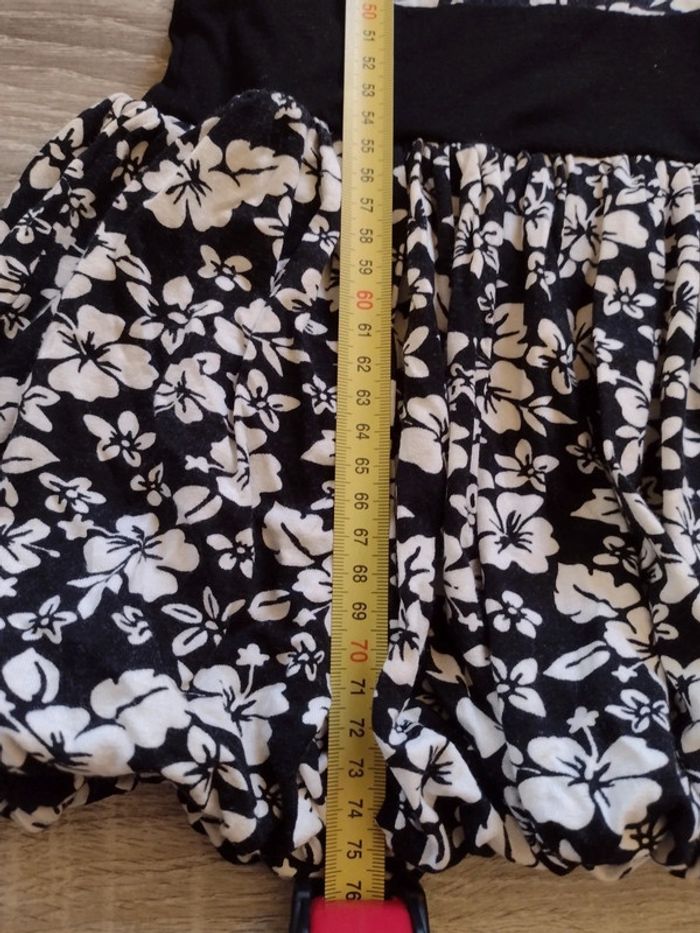 Doublée en bas, taille L mais ça peut aller aussi comme une M car il y a 5% d'élastomère . Longueur totale 75 cm environ.