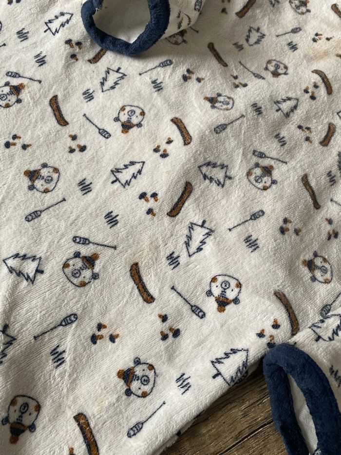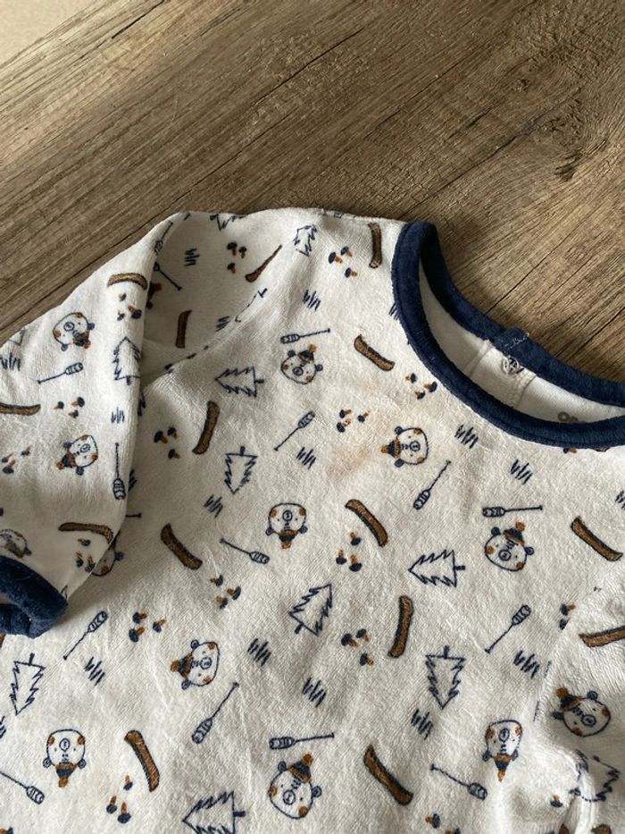 Pyjama bébé hiver. Taille 18 mois. Tache légère mais voyante sur le devant du pyjama, voir photo 2 et 3.