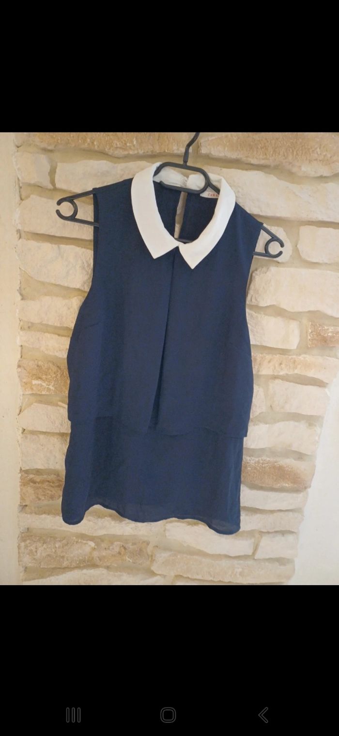 Blouse très légère, sans manches, avec petit col. Boutonnée à l arrière