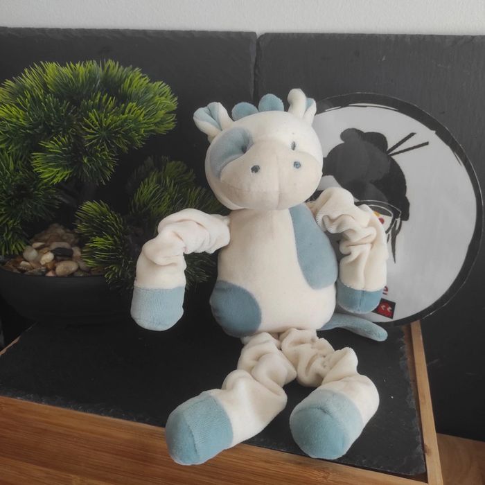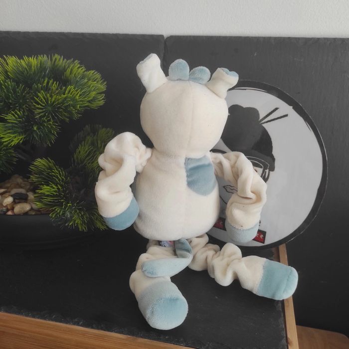 Doudou Vache Blanche et Bleue Sucre d Orge patte élastique membre Girafe Beige - photo numéro 1