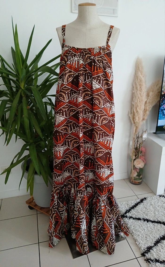 🌼Longue robe d'été à motifs, avec poches sur les côtés, tissu léger en coton, pagne Wax avec doublure intérieure, non transparent, idéal été, Neuve jamais porté 🌼Taille: M 🏷Toutes les mesures importantes sont prises à plat,  📏Dimensions: Longueur: 1,44 cm Poitrine/Aisselle à aisselle: 48 cm ⚠️Important : Il n'y a pas la touche pour créer les LOTS car vous êtes sur un compte Vinted Pro, Ça sera donc à moi de vous le faire manuellement. Si vous désirez acheter en lot, merci de me contacter en privé via la photo ou screen des Articles intéressés.. 📥 Envoie Rapide et Soigné des colis, Tous les jours, Sous 24/48h maximum🚀 🚚 Envoie sur tous les points Relais ⚠️Vêtements sans défaut particulier 🚭 Maison non-fumeur 🎁 Cadeaux offert si possible #mayevêtfemmepagne