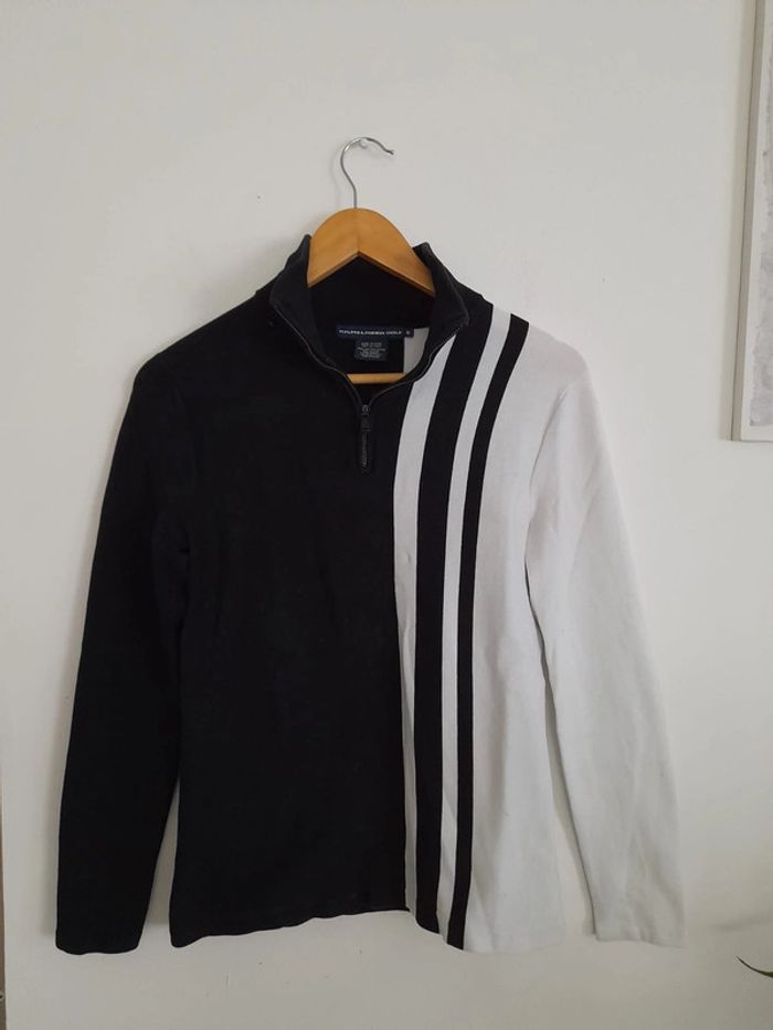 🌿Très joli Pull/Sweat unisexe Vintage 90" de marque Ralph Lauren golf noir et blanc a rayures, manches longue, Articles 100% original, en très bon état ⤵️ 📌Sans péluche ni trou ⚠️Aucune imperfection, en parfait état 🏷Toutes les mesures sont prises à plat,  Dimensions: Longueur: 72 cm Aisselle à aisselle: 45 cm Longueur Manches : 64 cm ♻️Article déjà lavé et repassé, Envoie Rapide et Soigné 📥J'expedie les colis quasiment tous les jours donc le votre partira forcement sous 24/48h 🚚 Envoie sur tous les points Relais ⚠️Important : Il n'y a pas la touche pour créer les LOTS car vous êtes sur un compte Vinted Pro, Ça sera donc à moi de vous le faire manuellement. Si vous désirez acheter en lot, merci de me contacter en privé via la photo ou screen des Articles 🚭 Maison non-fumeur #mayevêtementdemarque