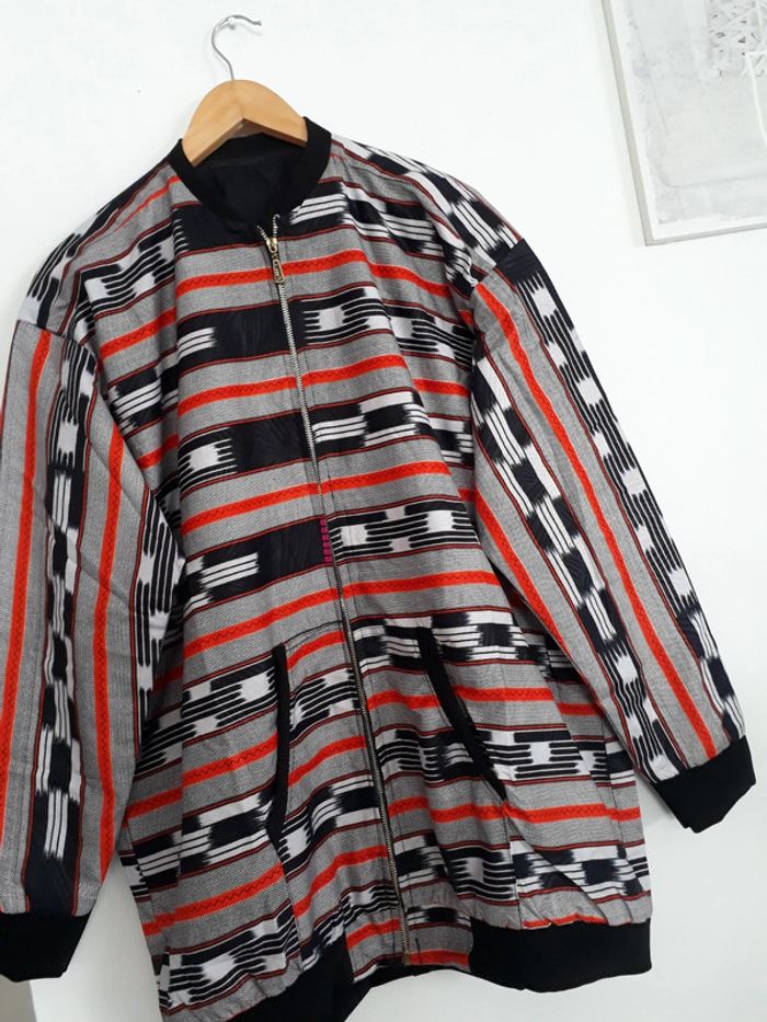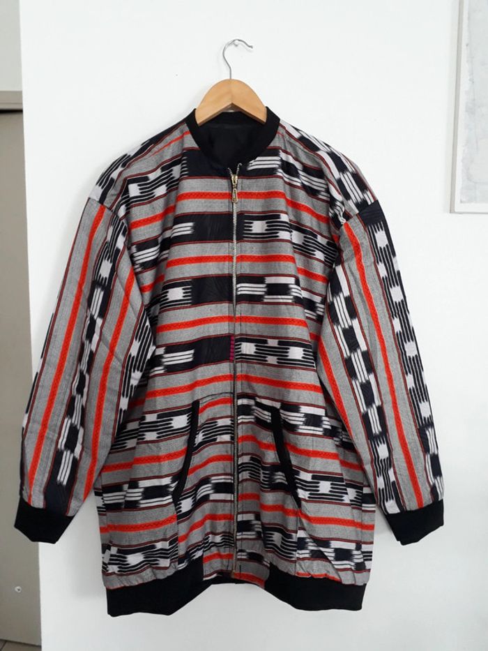 🌿Veste d'été blouson aviateur/ jacket zippée à motifs, modèle Unisexe , manches longue, avec poches à l'avant, tissu léger en coton, pagne Wax avec doublure intérieure, non transparent, idéal été, Neuf jamais porté ⤵️ 📌Taille: XL ⚠️Toutes les Mesures sont prises à plat 📏Dimensions : Longeur: 82 cm Aisselle à aisselle : 64 cm Manches: 60 cm ⚠️Important : Il n'y a pas la touche pour créer les LOTS car vous êtes sur un compte Vinted Pro, Ça sera donc à moi de vous le faire manuellement. Si vous désirez acheter en lot, merci de me contacter en privé via la photo ou screen des Articles intéressés.. 📥 Envoie Rapide et Soigné des colis, Tous les jours, Sous 24/48h maximum🚀 🚚 Envoie sur tous les points Relais 🚭 Maison non-fumeur 🎁 Cadeaux offert si possible #mayevêthommepagne