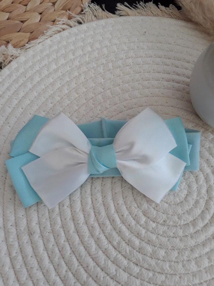 🌿Joli bandeau extensible avec noeux bleu et blanc, neuf jamais porté #mayeaccessoirsenfants