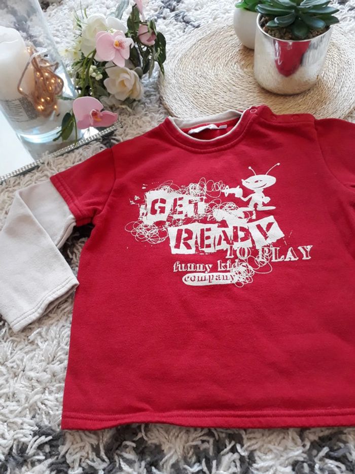 Vends pull rouge combi, manches longue porté quelques fois, en très bon état #mayevêtemntgarçon4ans