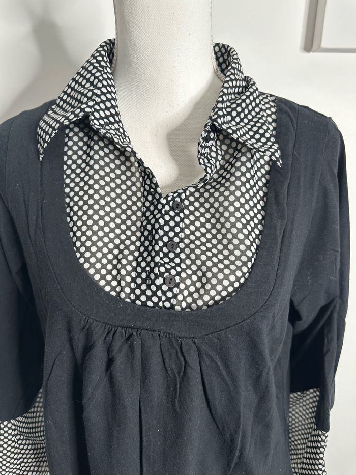 Blouse chemise - Excellent état - Taille 42/44 équivalent XL/XXL - Noire et blanche - Imprimés pois - Boutons au niveau du col - Blancheporte - 100% Coton