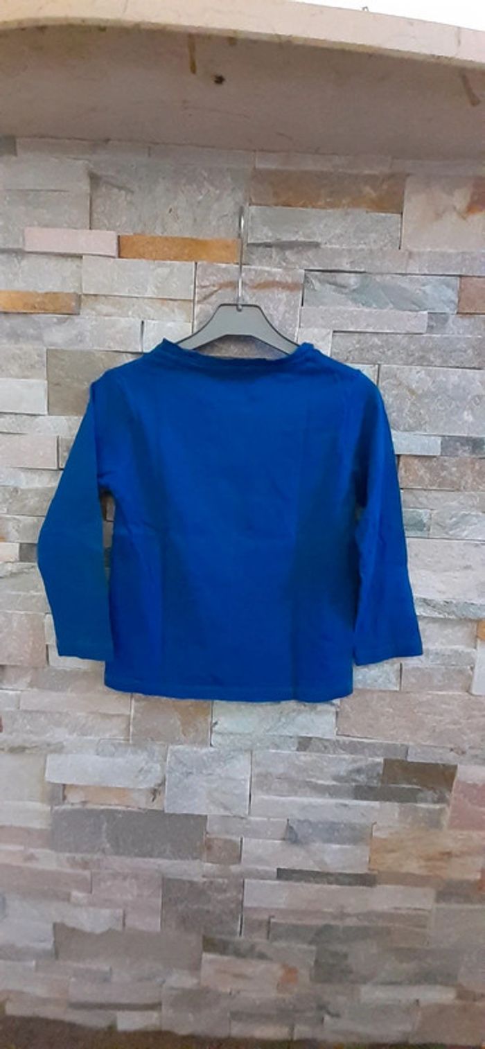 Pull fin haut tee shirt manches longues Galeries Lafayettes T 3 ans 98 cm Bleu ,inscription orange Coton Mon dressing est classé par taille et réductions activées 😉 #mespetitstresors3ansgarçon