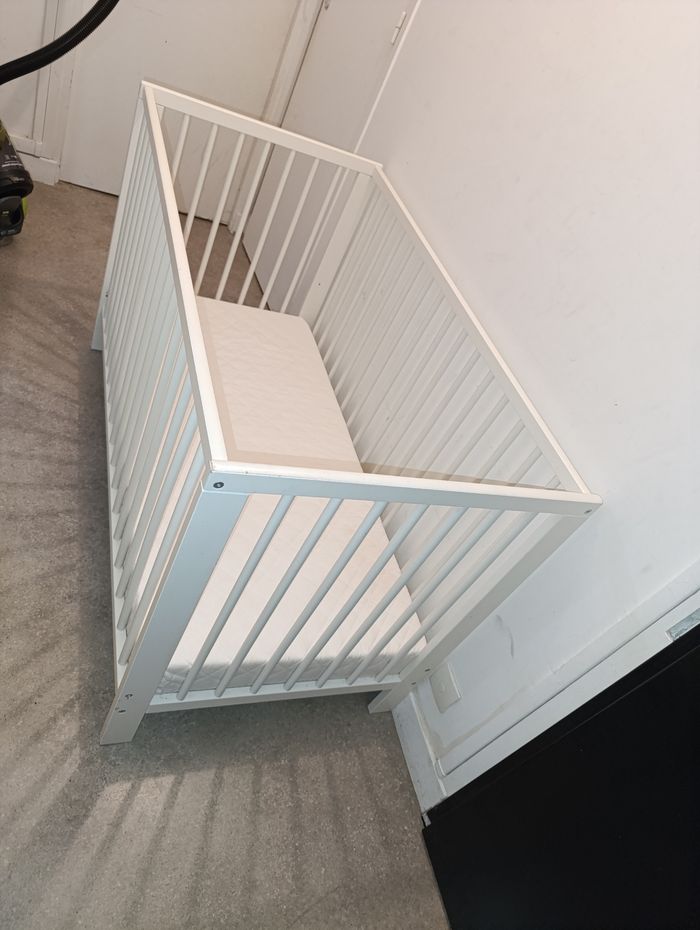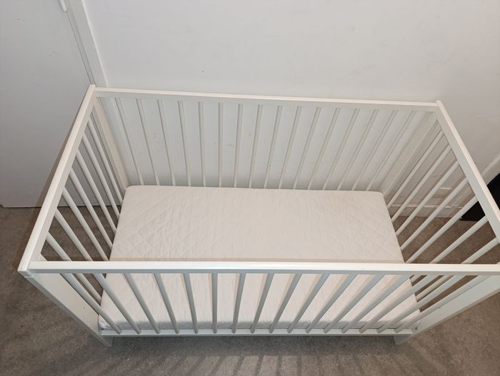 Lit a barreaux+ matelas Matelas utilisé seulement 2 fois Ikea