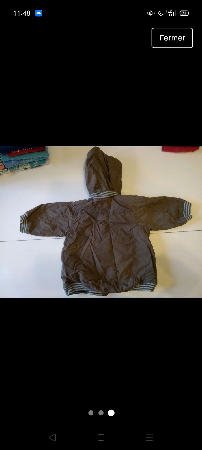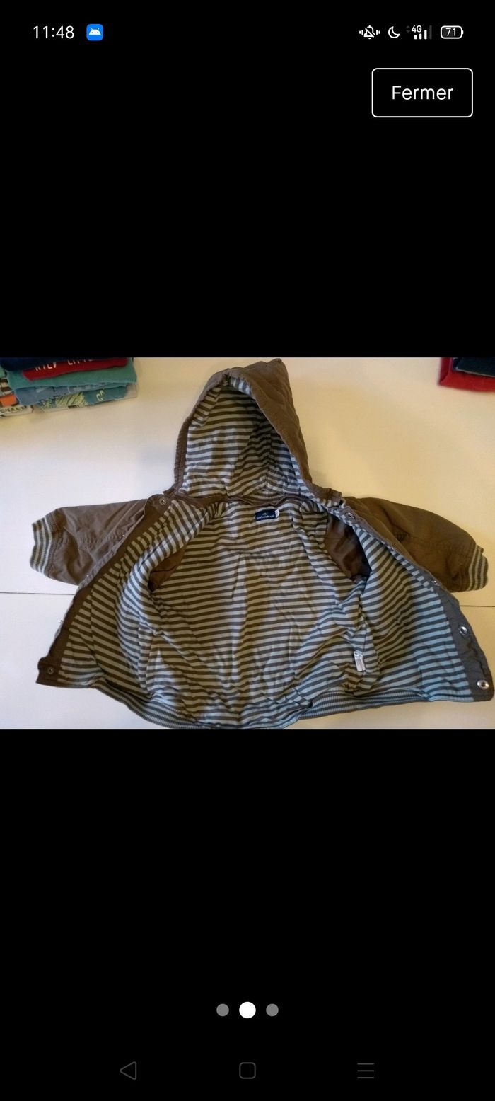 Manteau pression marron et bleu clair. 12 mois Sergent major. Capuche retirable par boutons pression. Tbe