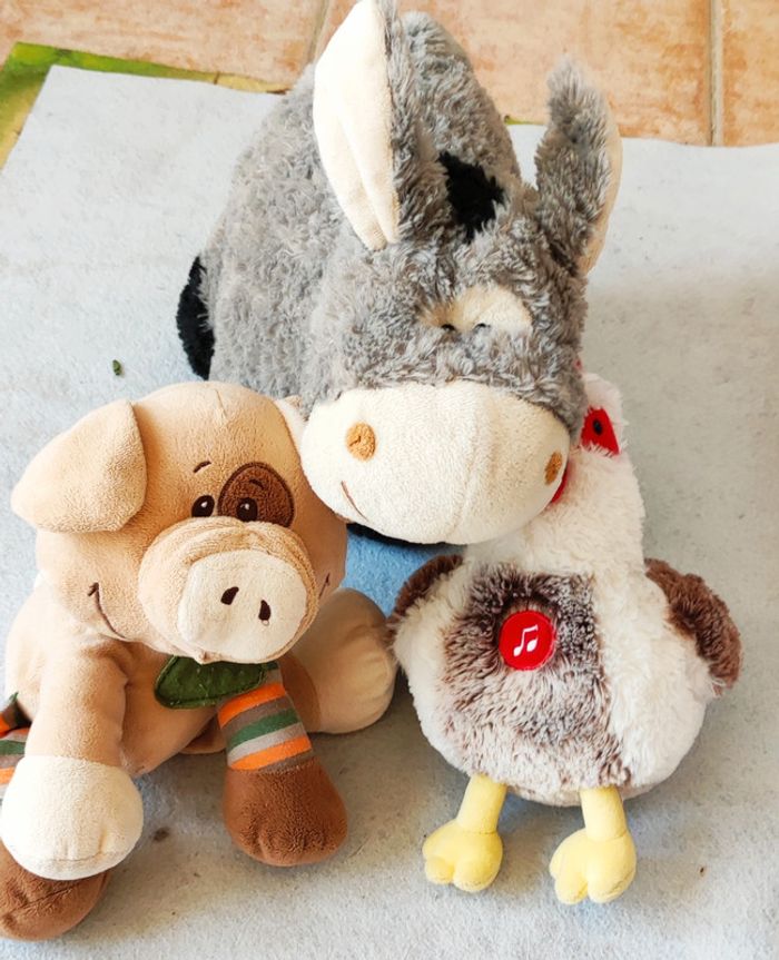 Lot peluches 3 peluches le coq fait de la musique. Tbeg