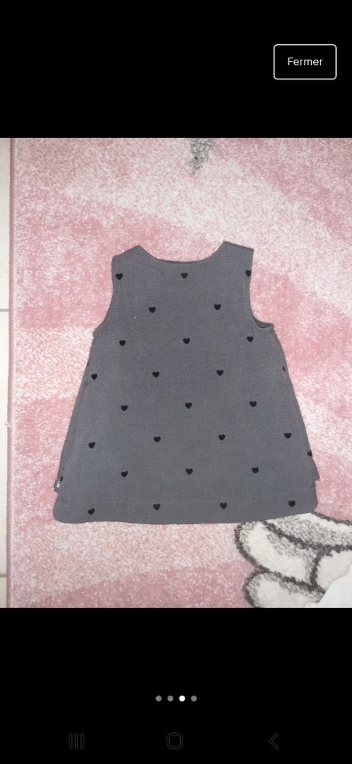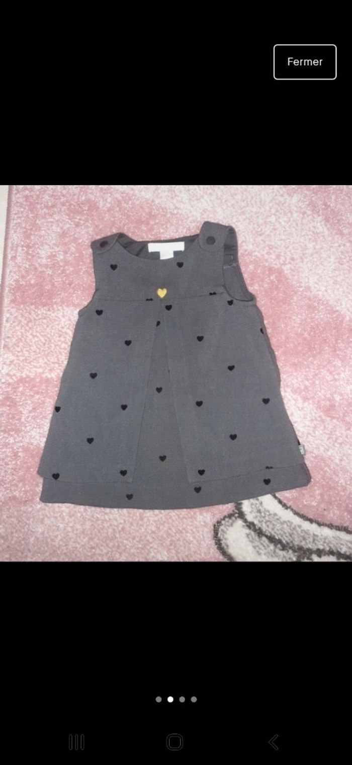 Ensemble robe grise avec des cœurs noirs en velours et un en or avec son legging blanc qui a 2 petits boutons noirs sur le bas Très très peu porté