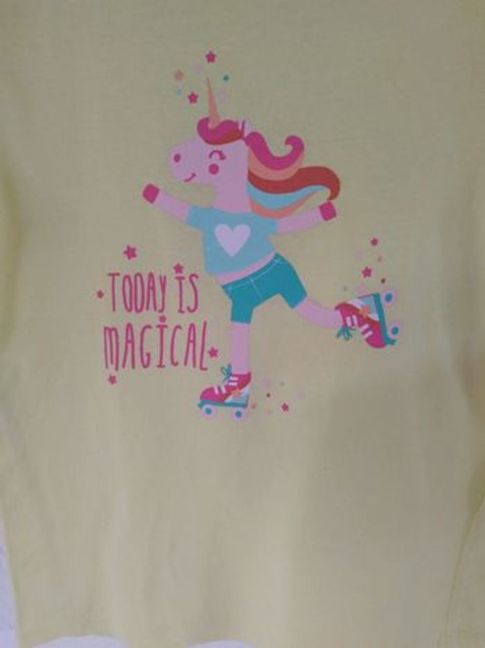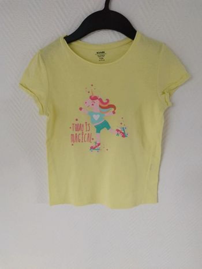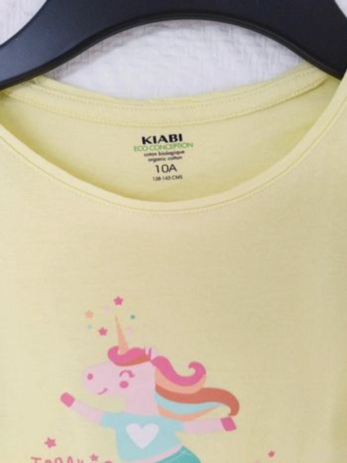 T-shirt jaune avec licorne en taille 10 ans , marque kiabi, en coton biologique
