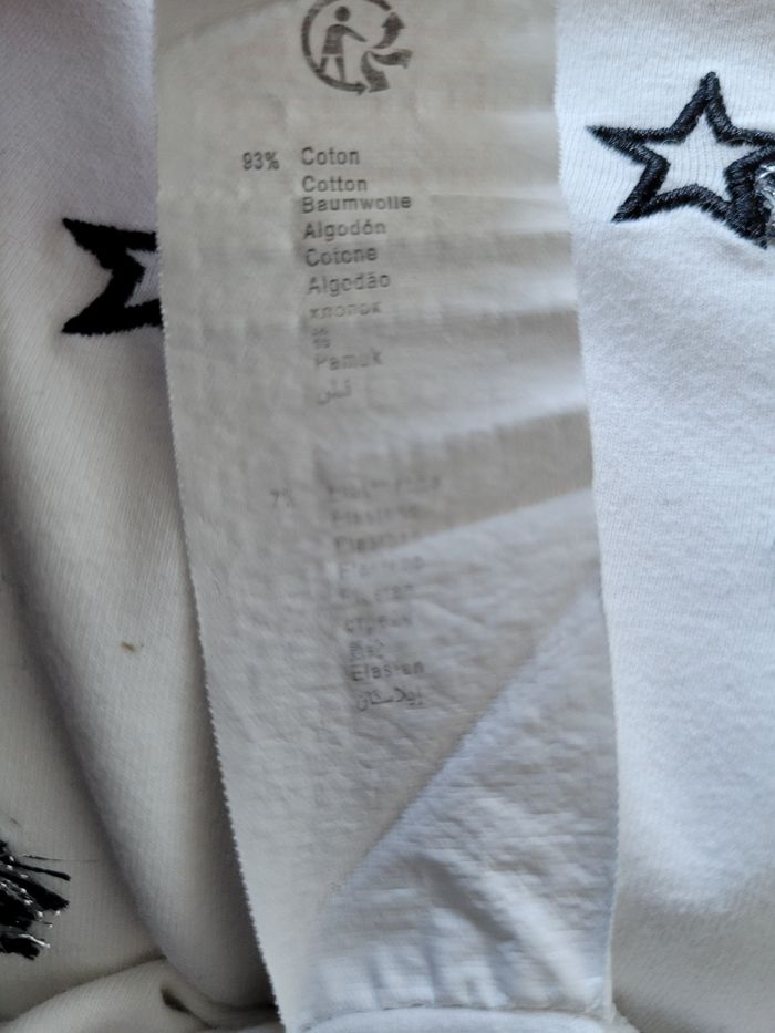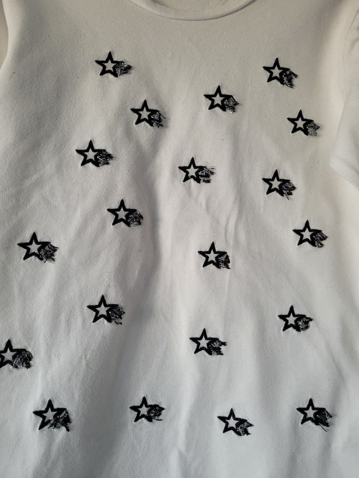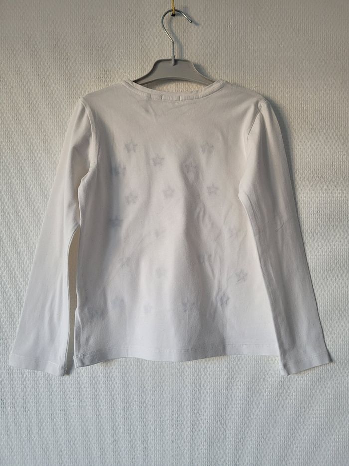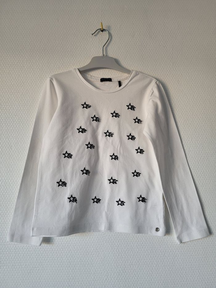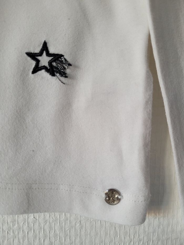 T-shirt écru de marque IKKS taille 8 ans Petites étoiles noires brodées avec queues noires et argentées Manches longues 93% coton/ 7% elasthanne En très bon état