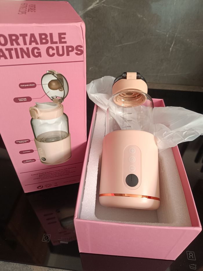 Chauffe biberon en verre portable très pratique pour chauffer l'eau des biberons à l'extérieur se charge avec une prise comme un téléphone chargeur inclus le tout vendu neuf dans sa boite