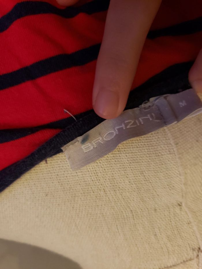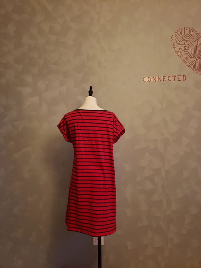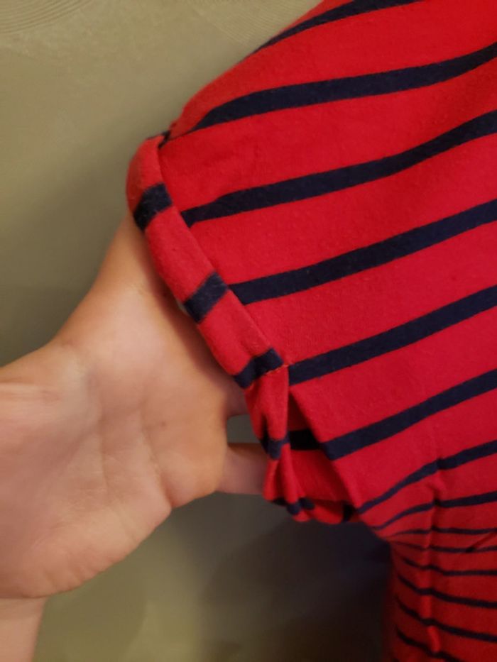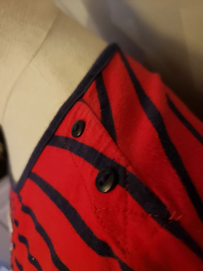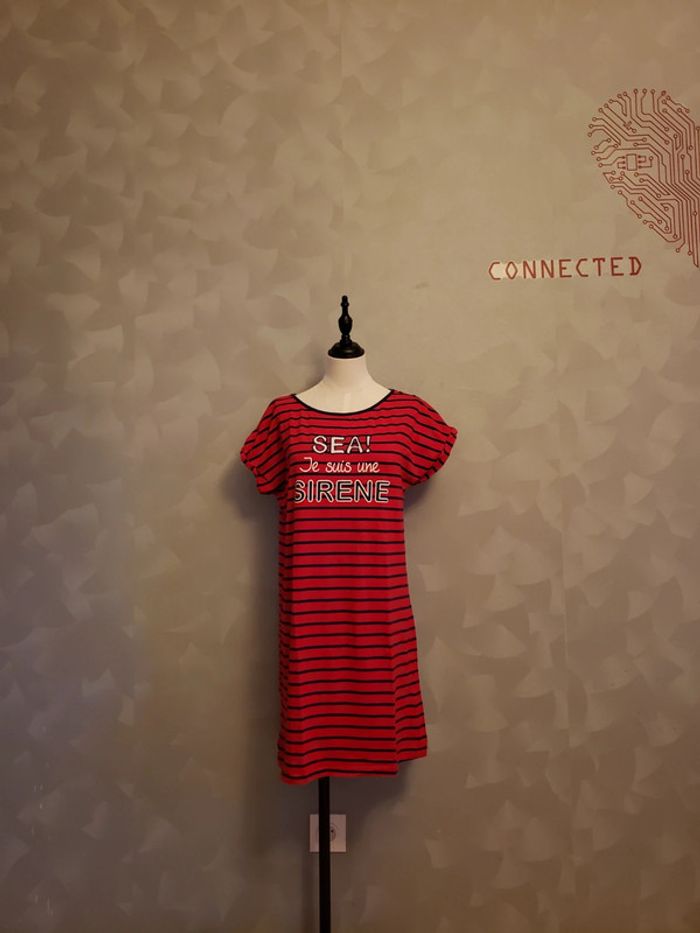 Chemise de nuit 🎀 en parfait état (arrive à peu près au - dessus du genou) Couleurs : rouge foncé (plus foncé que sur les photos) et bleu marine Motifs : écriture, rayures et boutons sur l'épaule gauche (voir photos 2 et 4) Les manches ont des ourlets qu'on ne peut pas enlever, ils sont cousus (voir photo 3) Taille du mannequin : poitrine = 88cm, taille = 64cm, hanches = 83cm ⛔️ Pas de photo porté ⛔️ D’autres vêtements femme taille M : #clemencecavalierifemmeM