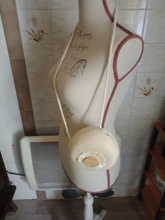 Petit sac bandoulière de 15 cm. En très bon état général. Écru