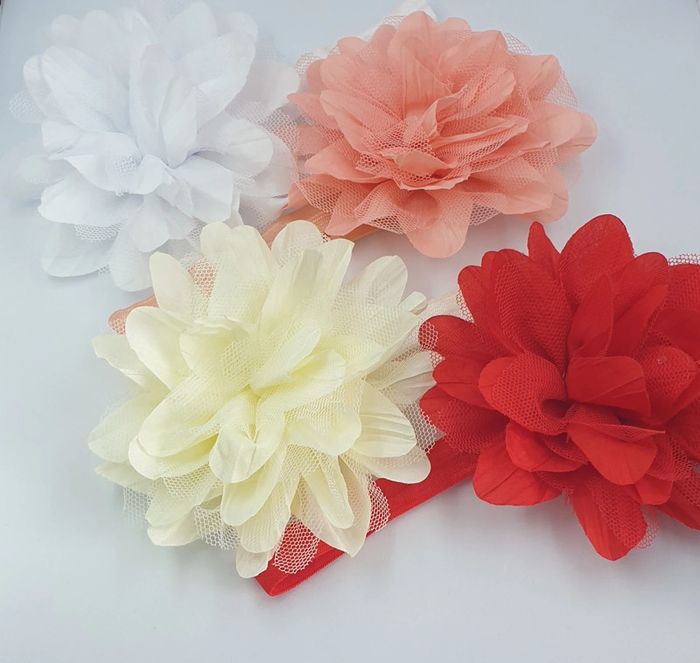 Lot de 2 bandeaux avec fleurs de couleurs: blanc, crème, corail et rouge. Très bon état car ma fille ne supportait pas les bandeaux. Taille unique. Mes autres articles en 1 et 3 mois: #angy623401mois #angy623403mois #angy62340puériculture #fleur #fleursdanslescheveux #têtefleurie J'ai d'autres bandeaux dans mon dressing. Maison non fumeur 🚭 et sans animaux 🐶🐱 Remise en main propre possible. Composez vos lots et profitez de réductions: ✅ 2 articles -5% ✅ 3 articles -10% ✅ 5 articles et plus -20%