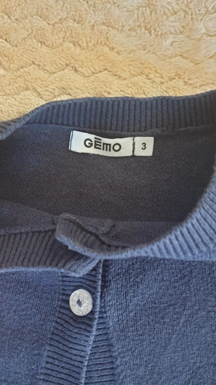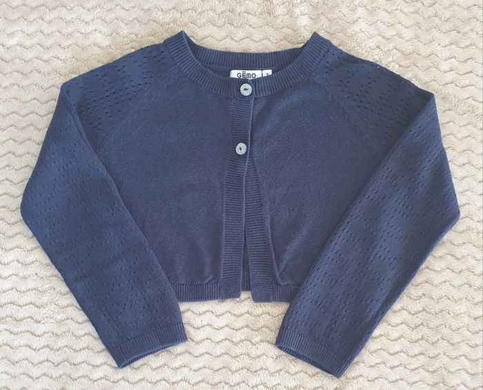 Gilet court de marque "GÉMO", de couleur bleue marine et de taille 3 ans. En très bon état. Mes autres articles en 3 ans: #angy623403ans Maison non fumeur 🚭 et sans animaux 🐶🐱 Remise en main propre possible. Composez vos lots et profitez de réductions: ✅ 2 articles -5% ✅ 3 articles -10% ✅ 5 articles et plus -20%