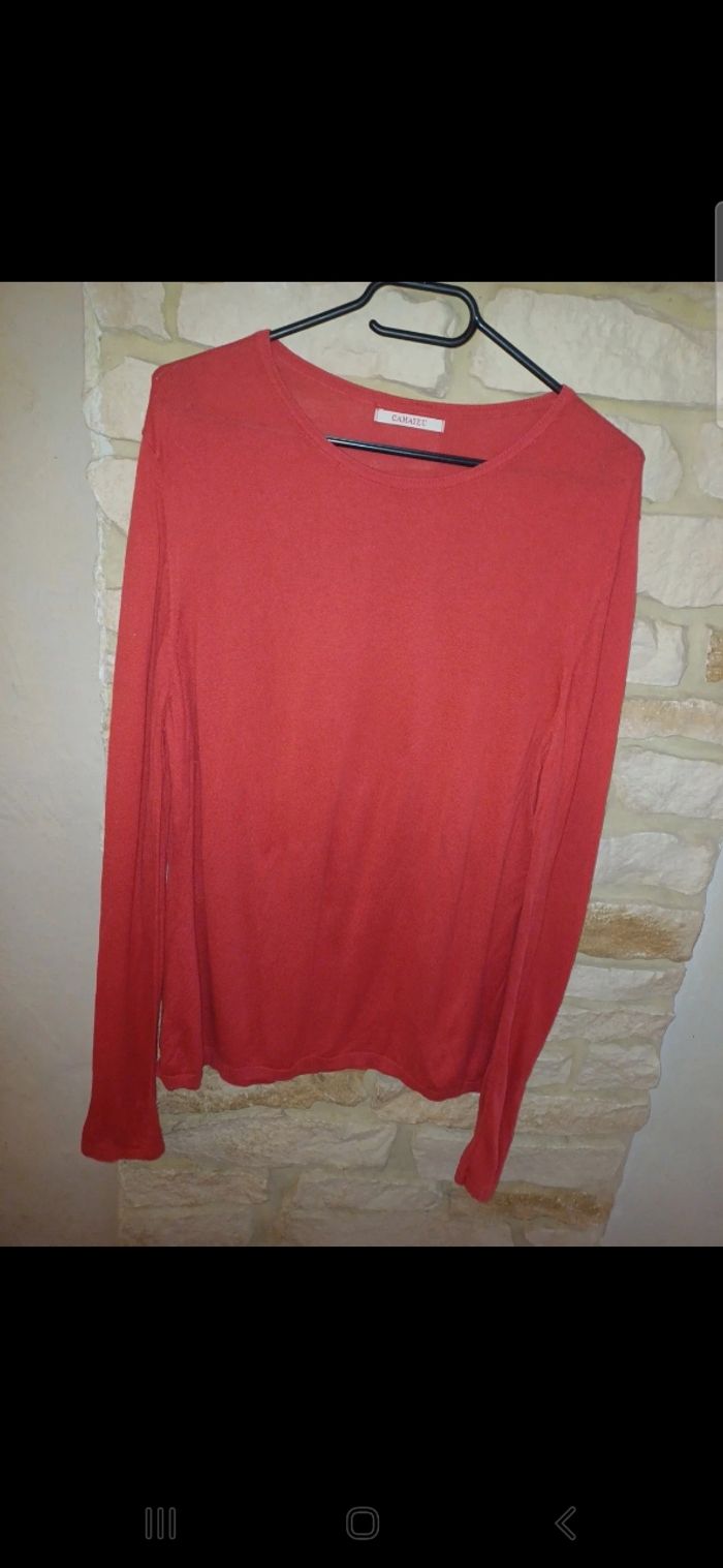 Pull léger à col long, longues manches. Couleur un peu passée et légèrement bouloché