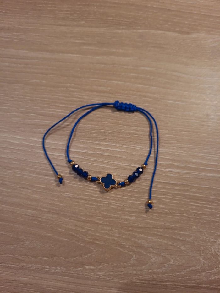 Bracelet cordon bleu et doré - photo numéro 1