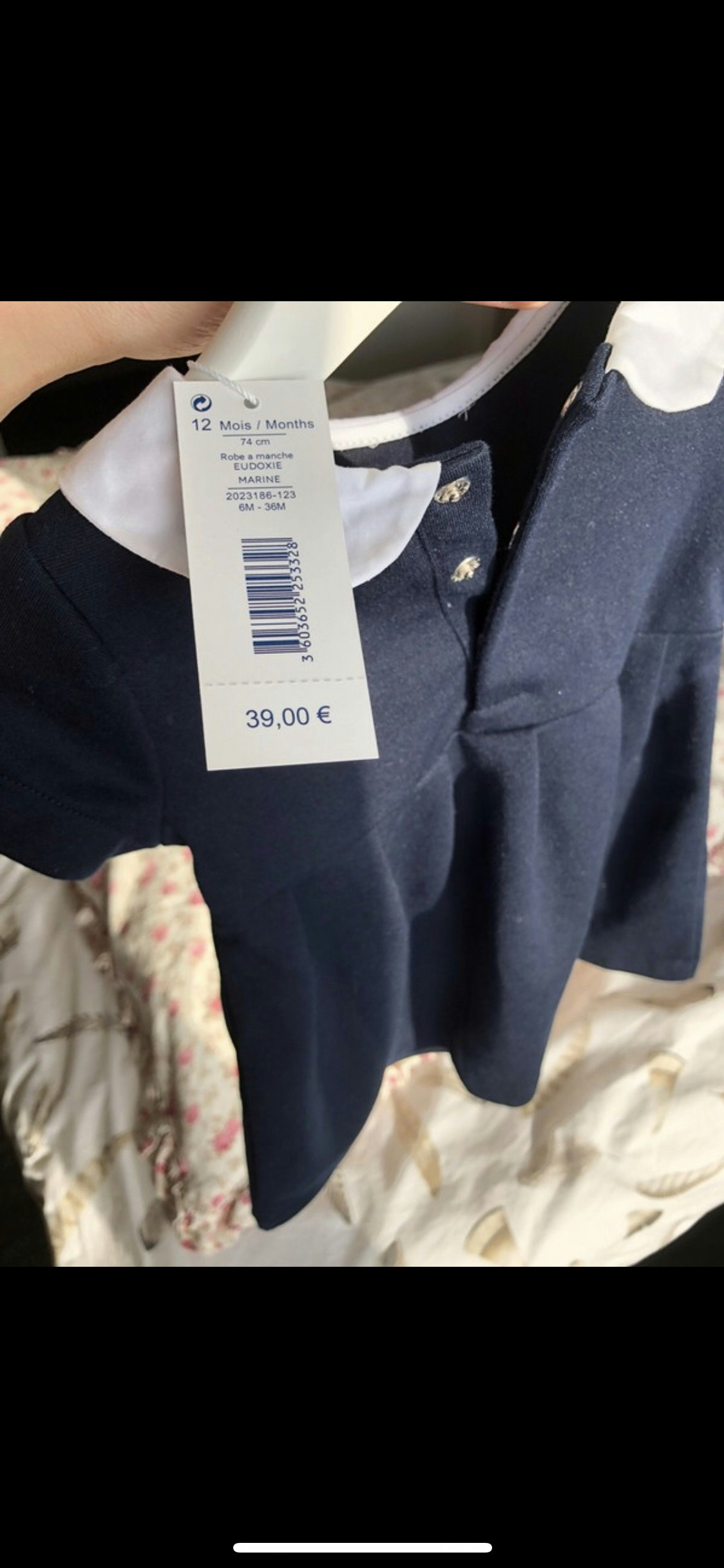 Robe bleu marine à col blanc Jacadi Neuf avec étiquette Prix d’achat 39€ Taille 12mois - 74cm