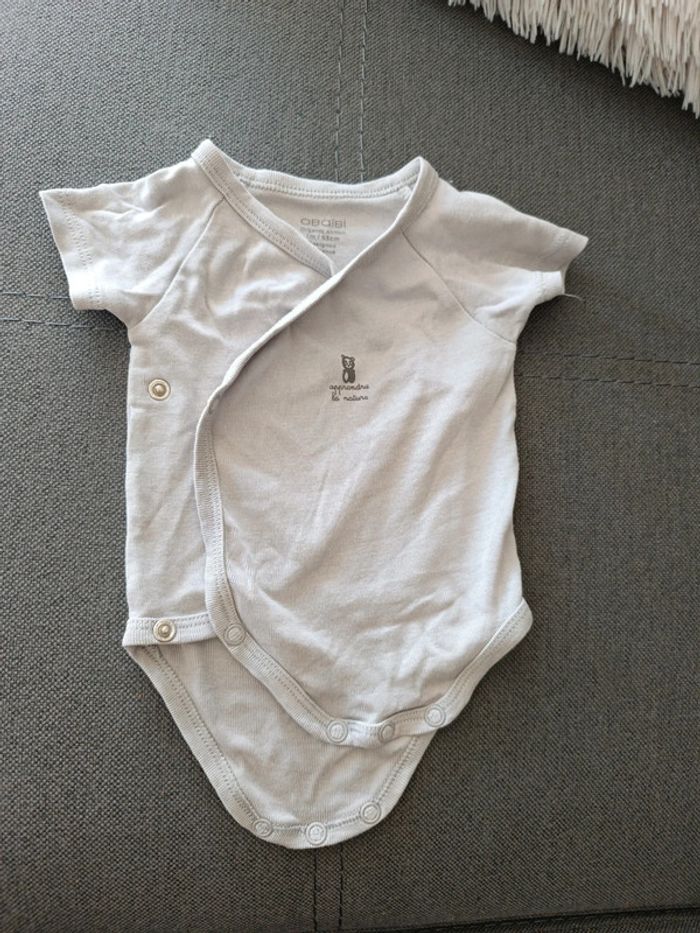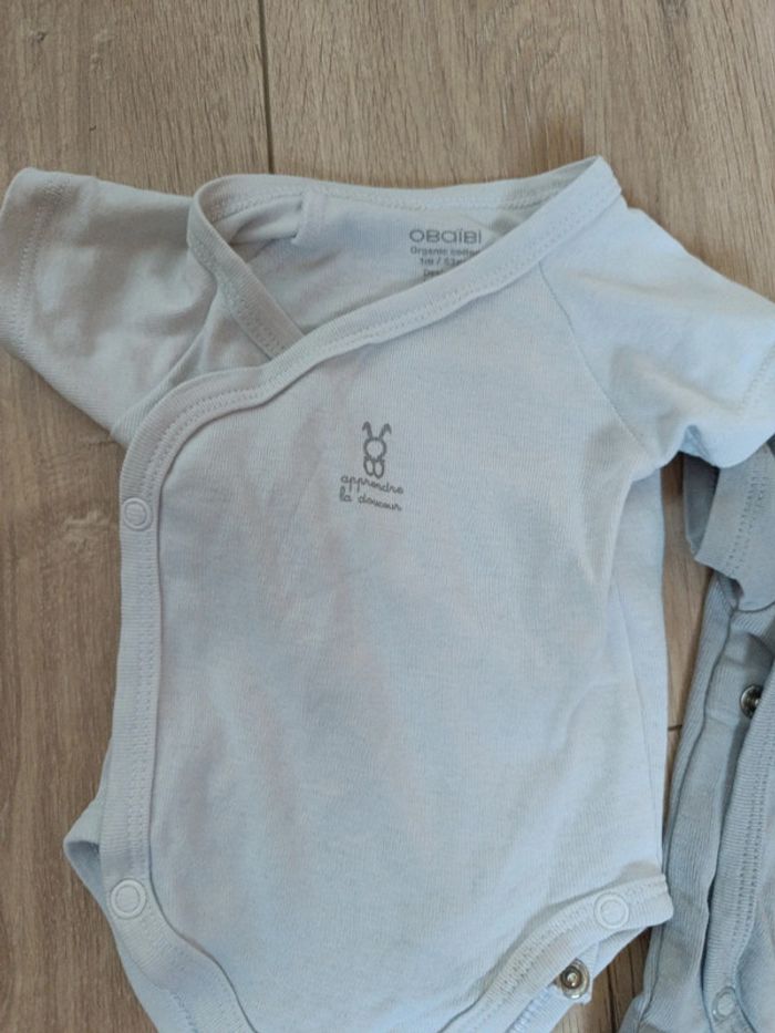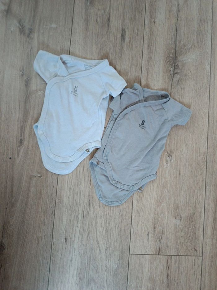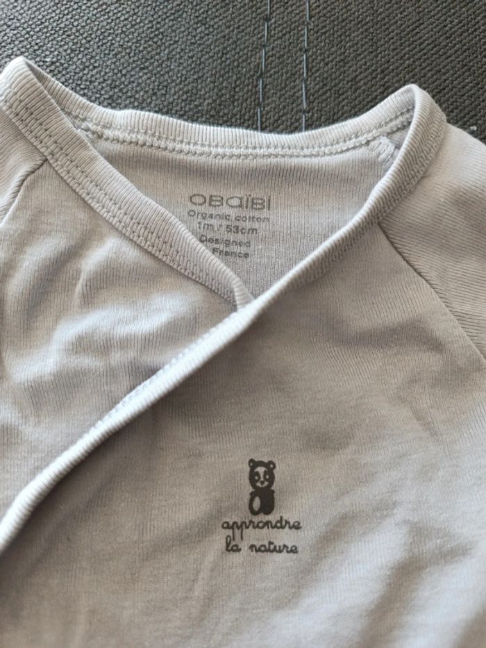 1 Body gris et un body blanc Marque Obaïbi Taille 1 mois